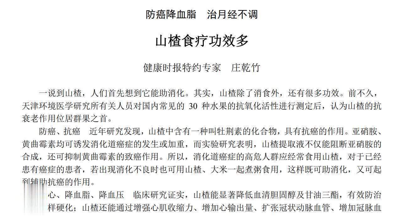 参考文件[1]庄乾竹.山楂食疗功效多[N].健康时报开云体育(中国)官方网站,2005-11-03(005).