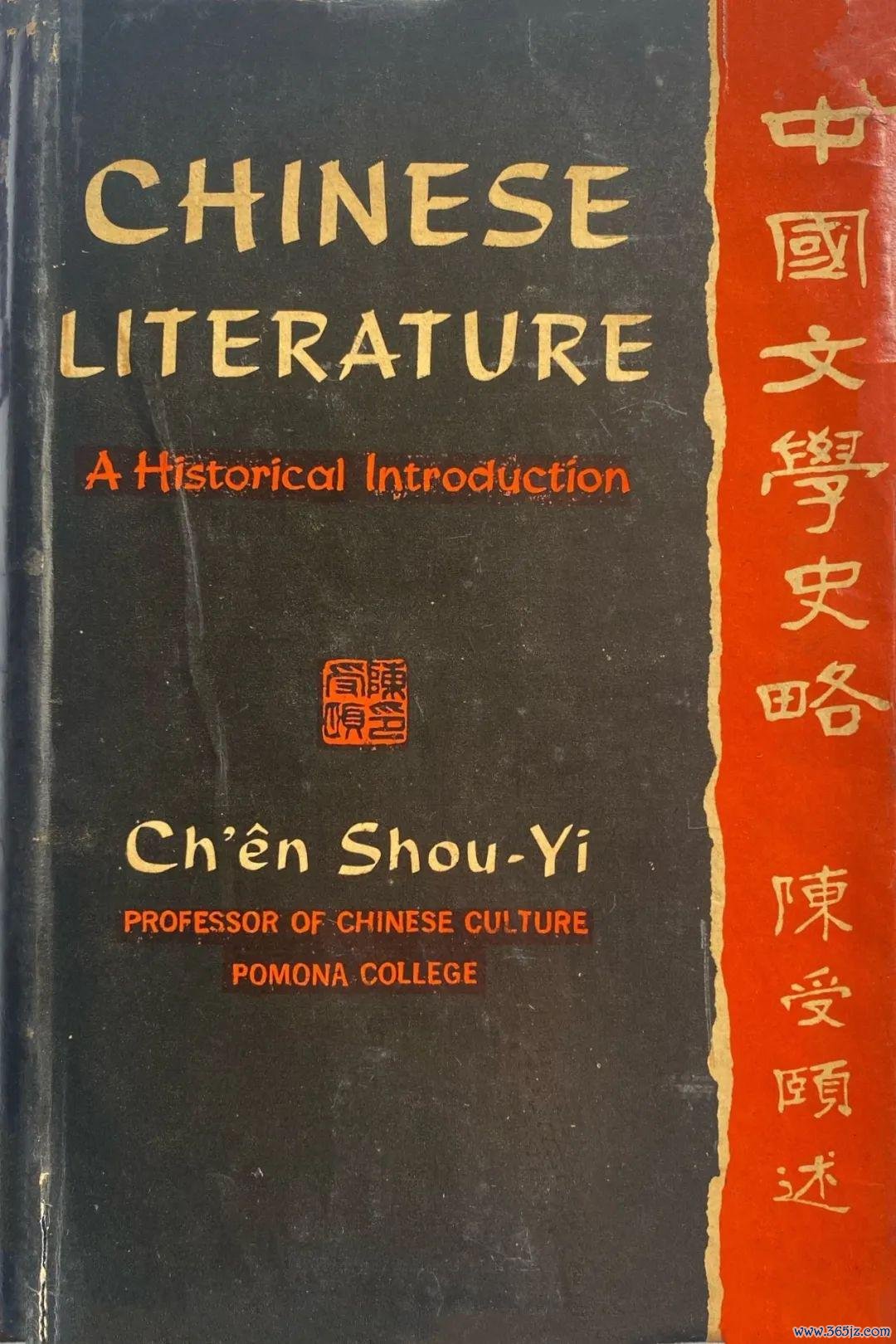 (1) Shou-yi Ch'en (陈受頤), ChineseLiterature: A Historical Introduction. New York: Ronald Press, 1961. 此书的封面,有中文书名:《中国体裁史略》。