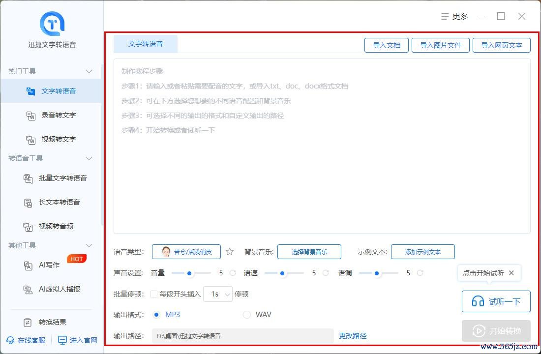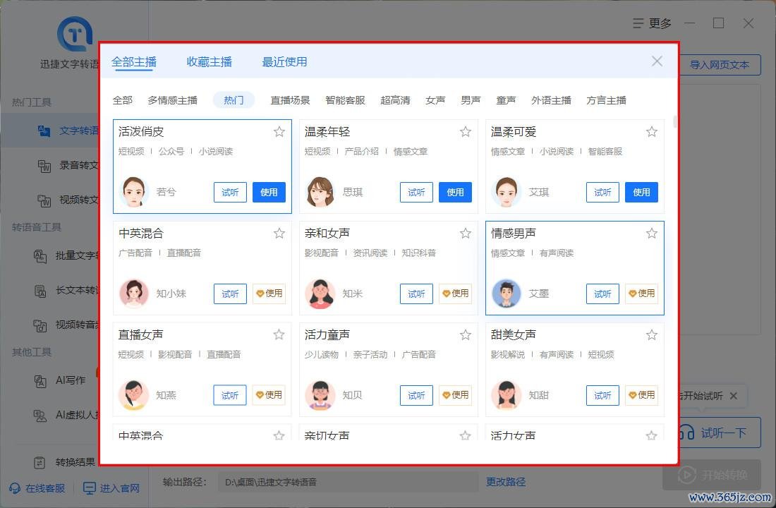 迅捷翰墨转语音复古多种语音包采用,包括男声、女声、童声等多种音色,还能治疗语速、音量,让你的配音作品愈加个性化。此外,它还复古导出多种音频才能,便捷你在不同平台上共享。