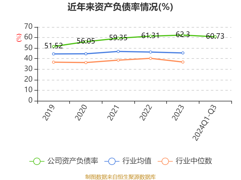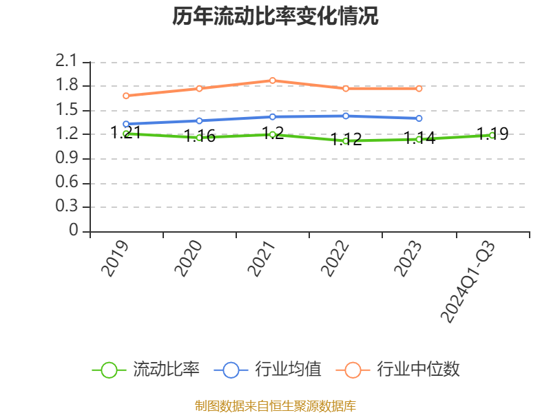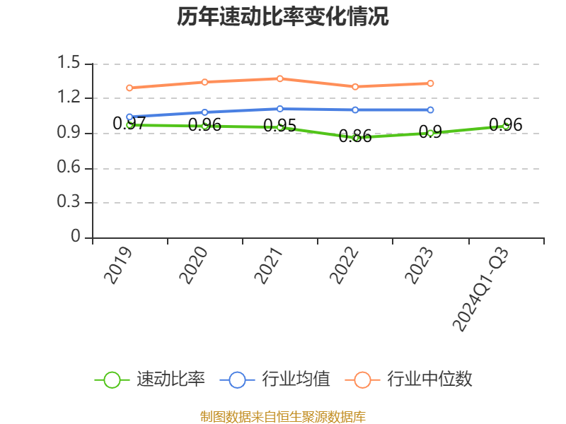 2024年前三季度,公司流动比率为1.19,速动比率为0.96。