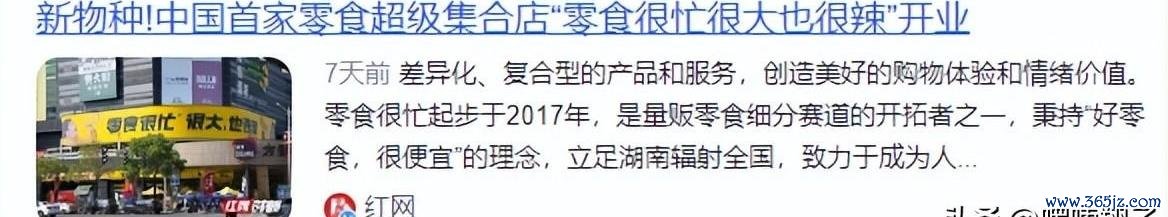 红网——《新物种!中国首家零食超等迫临店“零食很忙很大也很辣”开业》。